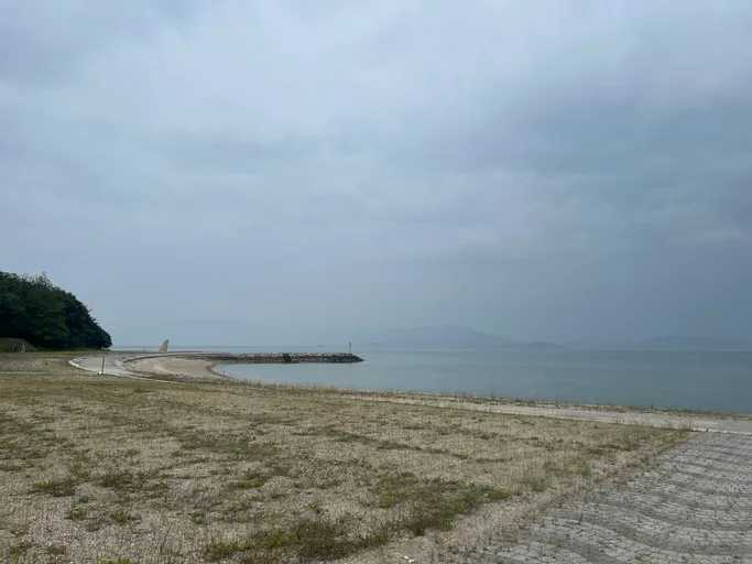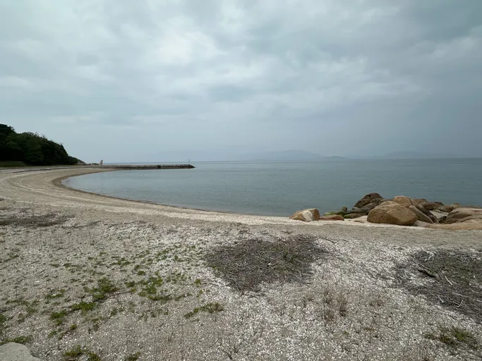 犬島港のちょうど反対側(島の南側)に位置し、弓なりに約180mの海岸線が続きます。眼前に広がる瀬戸内海の多島美は圧巻の景色で、隣にはキャンプ場も併設されています。